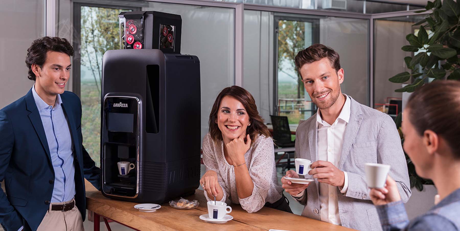 Lavazza offers a wide range of customised solutions for your business. From a compact design capsule machine for your (small) office, to a fully equipped coffee corner.