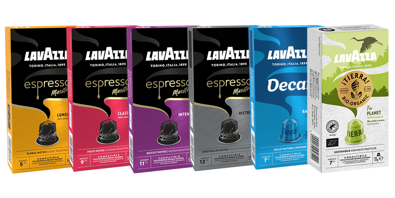 Met de Lavazza-capsules die geschikt zijn voor de Nespresso* Original-machines kun je genieten van het unieke aroma, de branding en de fluweelzachte blend die onze espresso koffiecapsules onderscheiden. Ontdek de compatibele capsules van Lavazza en geniet van je favoriete blend met een Nespresso*-koffiemachine.